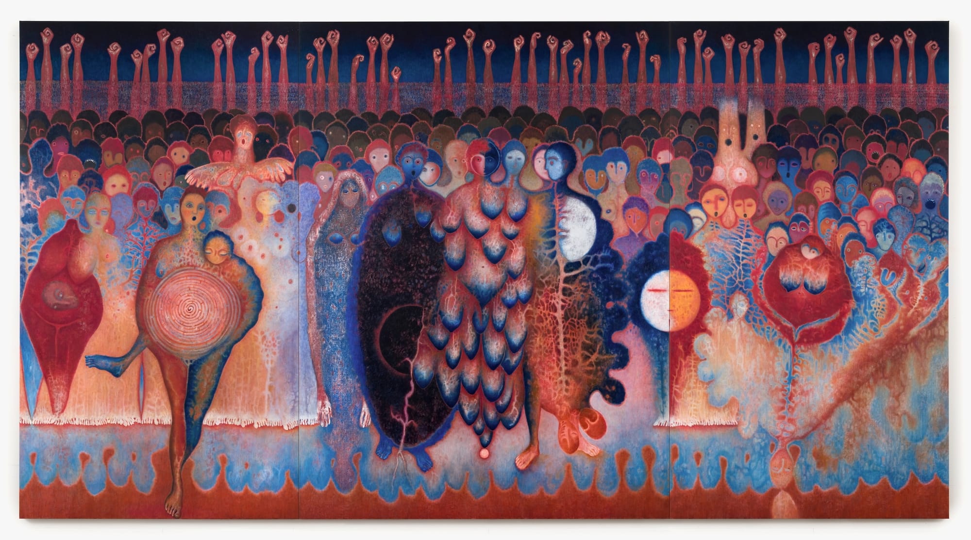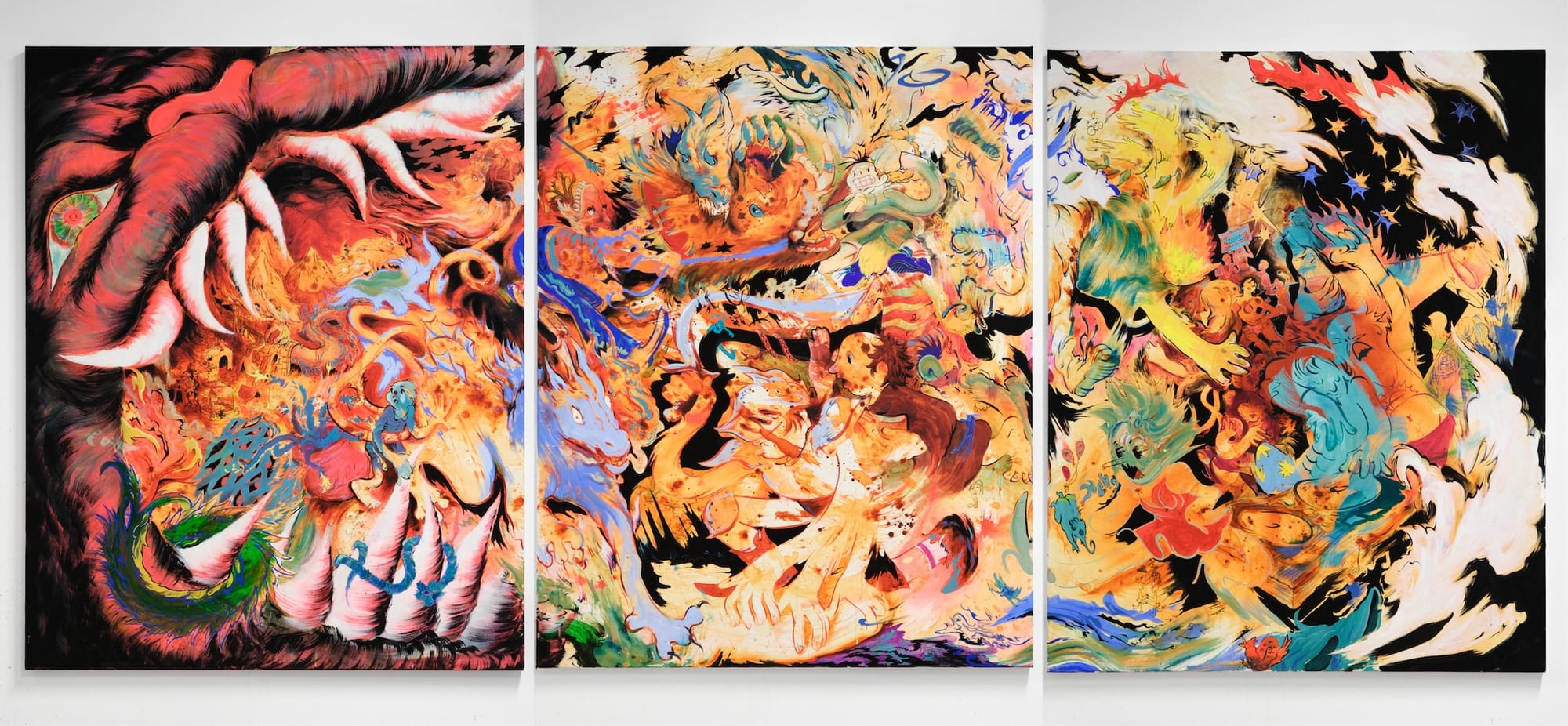 This exhibition's cheeky title foreshadows the inherent humor and self-referentiality of Susan Kim Alvarez's paintings. The Honolulu-born, Miami-based artist's multilayered heritage — Cuban, Vietnamese, and Jewish — informs the complexity of her compositions, which exaggerate and blur the line between cultural references. In the "Mouth of Miami" (2025), a 12-foot (~3.6-meter) triptych, tight coils of figures spring forth from fantastical maelstroms that carry the psychedelic intensity of a disco nap nightmare. Alvarez has real star power; this is not a show you want to sleep on.