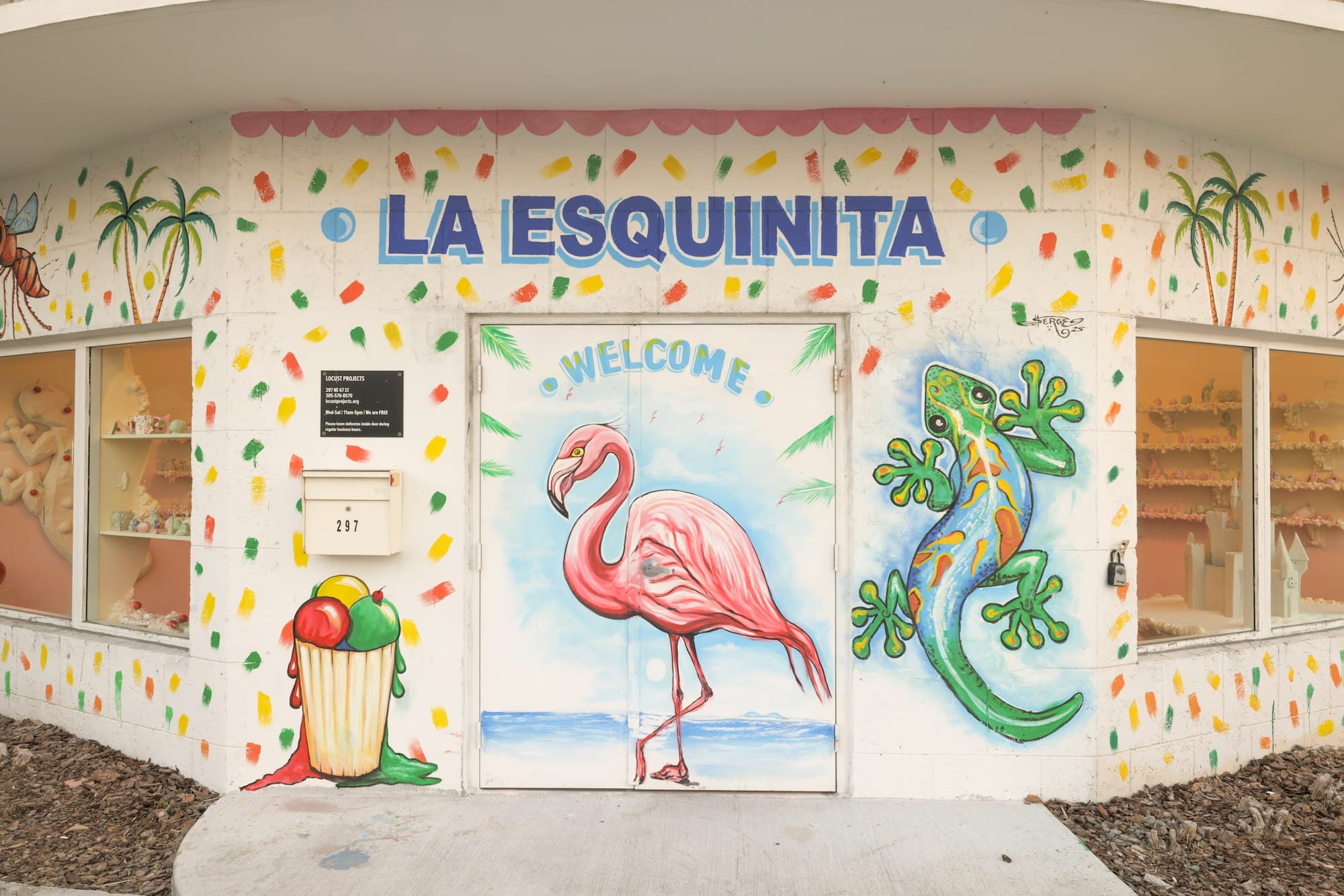 In a transportive installation described as "part corner store, part surreal dream," Miami artist Tara Long transforms this long-running nonprofit into a deceptively sweet allegory. Visitors are greeted by a colorful mural by Little Haiti artist Serge Toussaint on the building's facade before entering the lobby, staged like a souvenir shop filled with deliberately cloying miniature sculptures. A 12-foot-high (~3.6-meter-high) crumbling cake topped with mouth-watering cherries in a separate gallery is the centerpiece of the show, whose palatable motifs belie a darker message about sugar's exploitative history and present-day echoes.