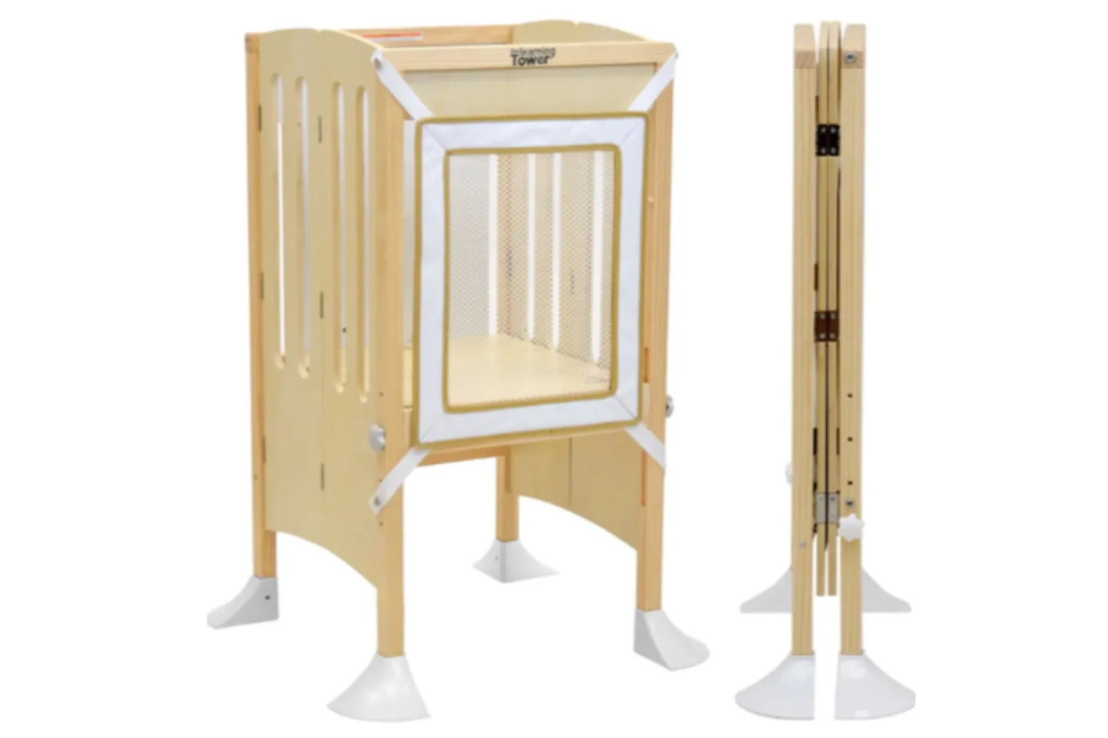 Meanwhile, the learning tower is made from wood with a natural finish. It was sold online by Walmart, Amazon, Little Partners, Wayfair, Etsy, GoodBuy Gear, buybuy BABY, and Bed Bath & Beyond between December 2024 and September 2025 for around $100.