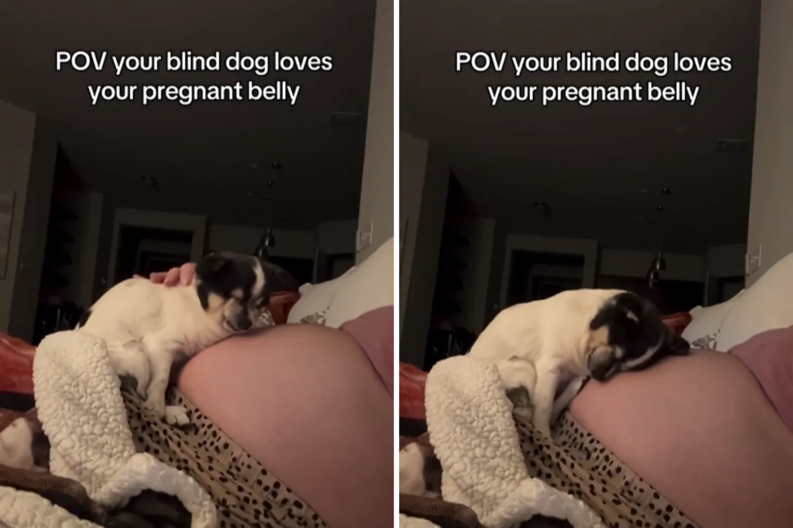 The heartwarming clip, shared on Tuesday under the username @shelby_salmela, shows the small pup sitting on her owner’s lap, head-butting her baby bump and rubbing her face all over it, as if already crazy in love with her little sister. "POV [point of view]: your blind dog loves your pregnant belly," the caption says, as the poster pets the little pup, Grace, at the back of the neck.