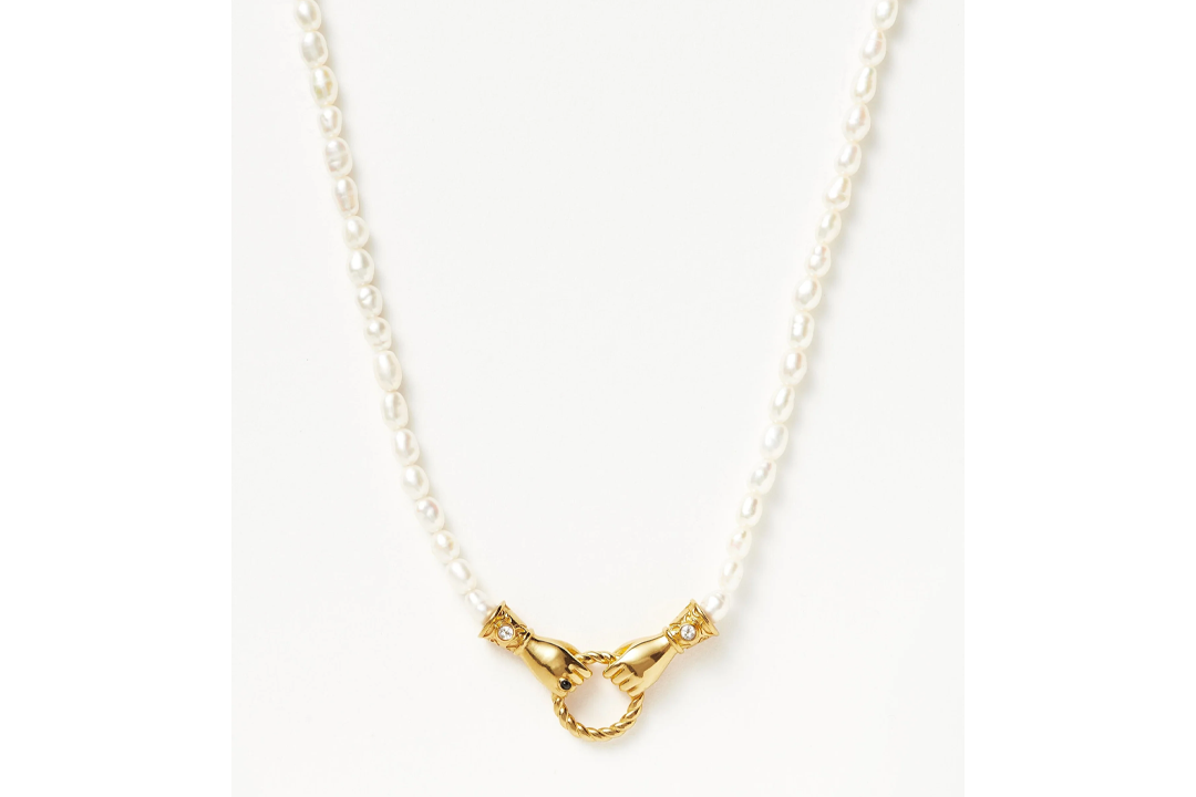 open image in gallery(Missoma)Hailing from British designer Harris Reed’s coveted collection with Missoma, the pendant necklace features two Georgian-inspired gold hands holding a twisted ring. Elevated by the seed pearl chain with black onyx detailing, it’s a much-loved staple in my own jewellery box. The design is an understated take on the pearl jewellery trend, easily worn solo during the day or stacked with gold chains for a statement look come evening.