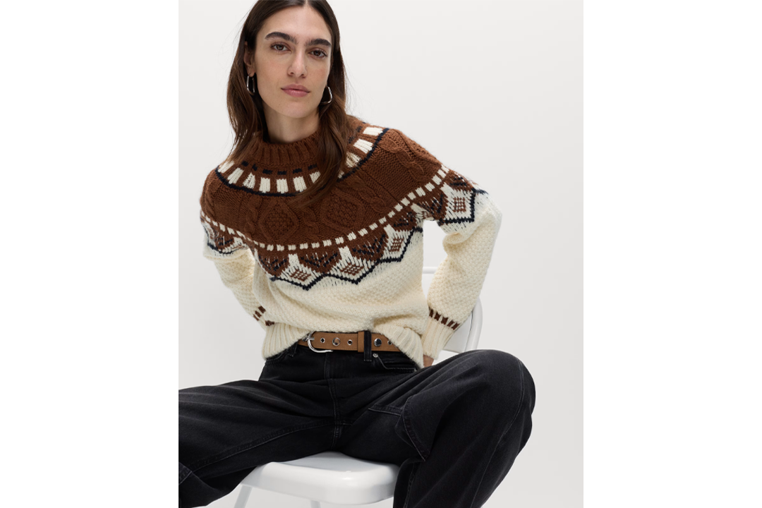 open image in gallery(M&S)An understated take on a Christmas jumper, a Fair Isle design is a timeless choice in the run-up to the festivities. This knit from M&S is reduced to £30 and features a ribbed crew neckline and a chocolate brown and cream colour palette.