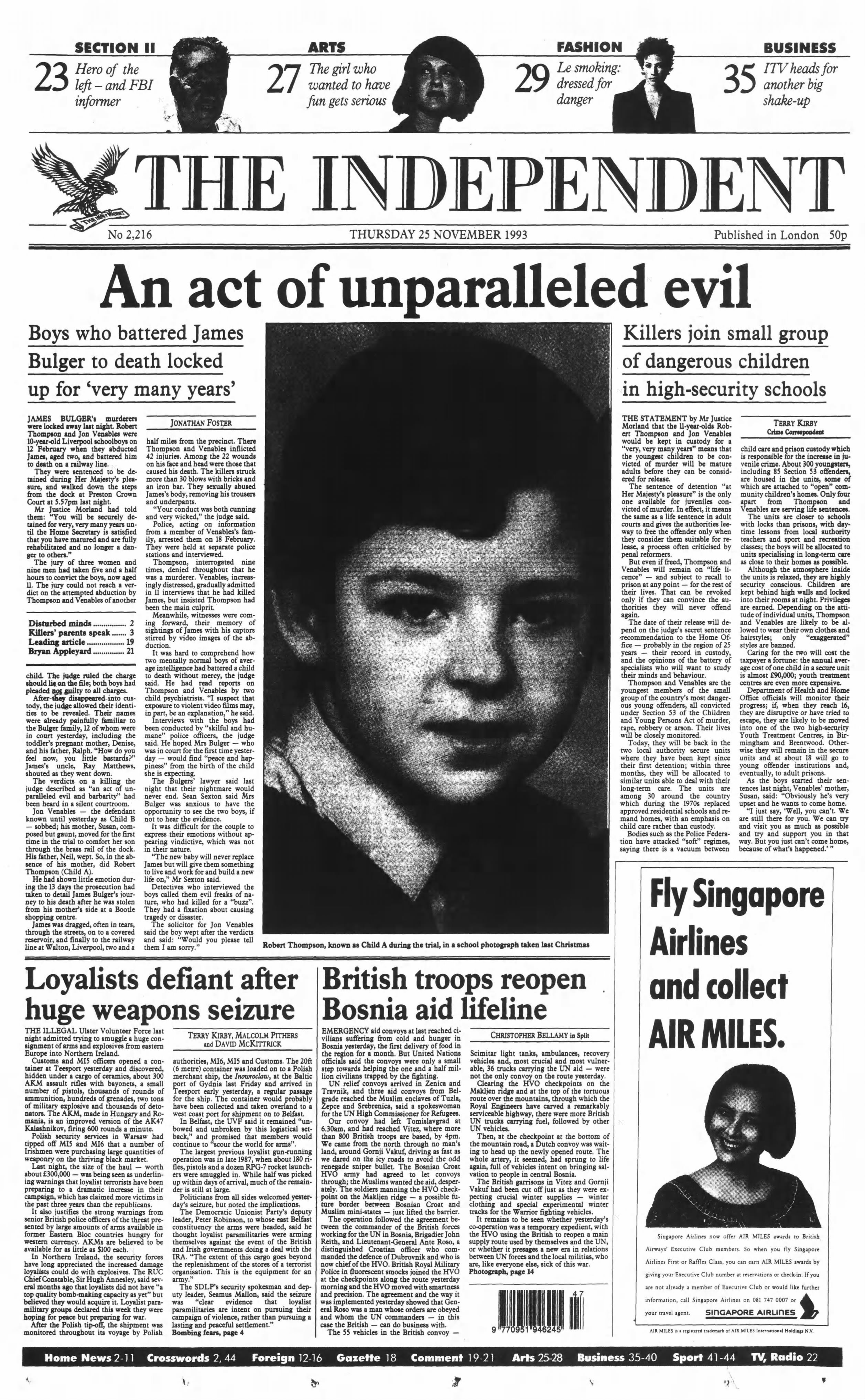 open image in gallery(The Independent)25 November 1993 – Bulger murder verdict