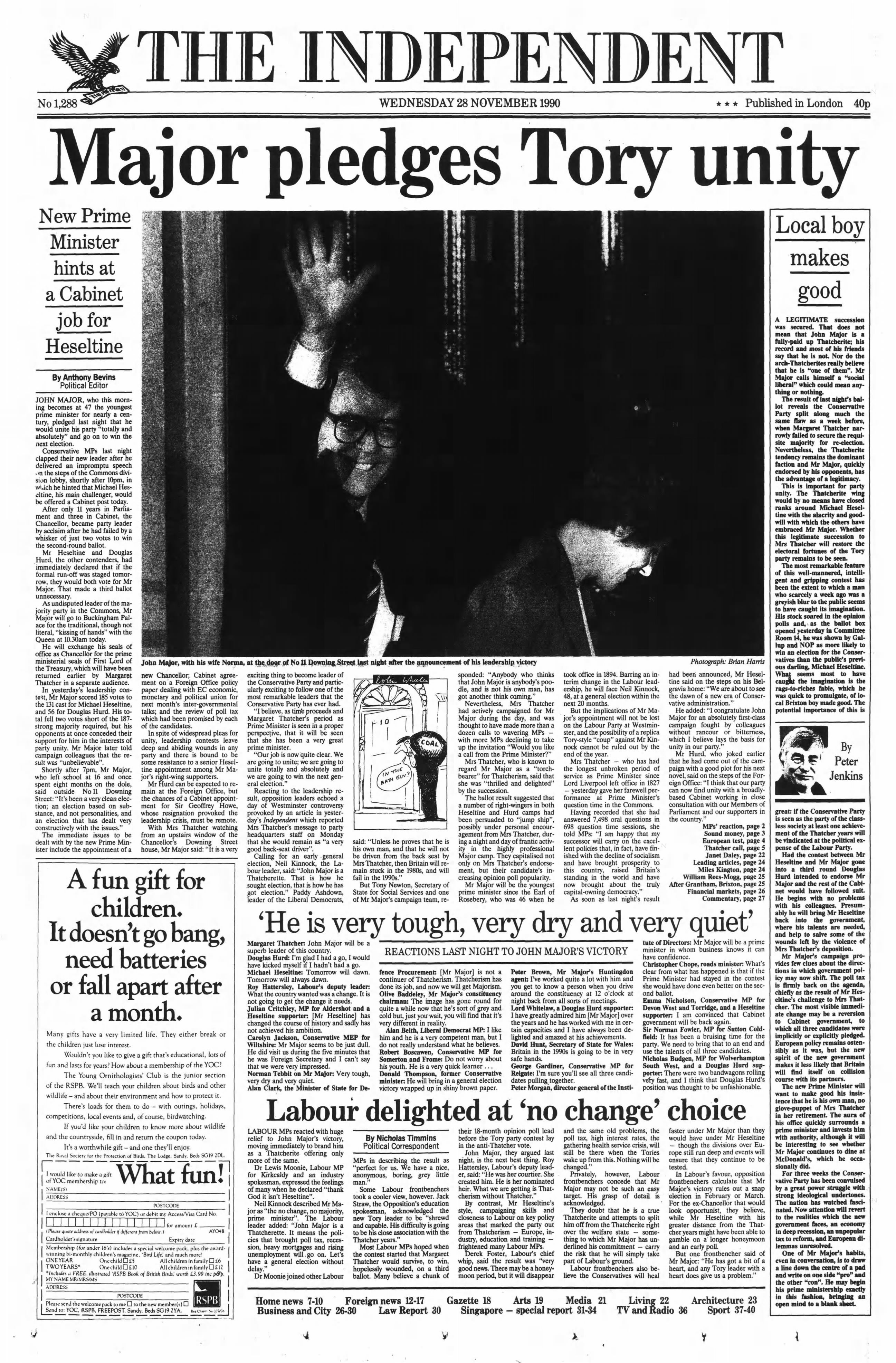 open image in gallery(The Independent)28 November 1990 – Major becomes prime minister