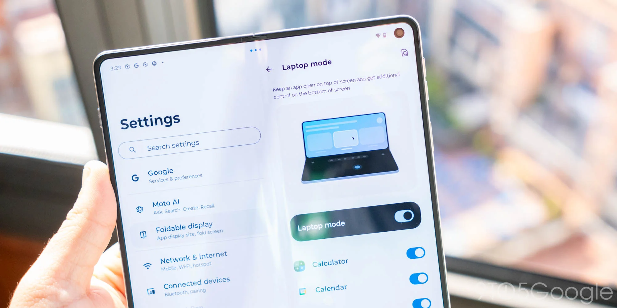 Motorola is also including “desk display” when the device is in a tented mode, with that mode able to show your clock and calendar. This feels very reminescent of Motorola’s tent modes on the Razr series, but I’m not so sure I’d use it on a book-style device.