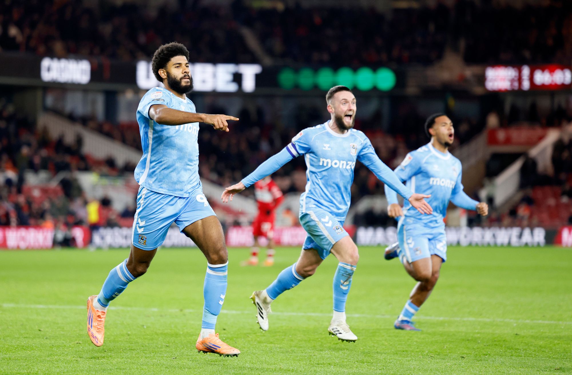 The Sky Blues landed two early blows in the opening 15 minutes, going ahead through Simms' stunning top-corner strike and Kitching's header.