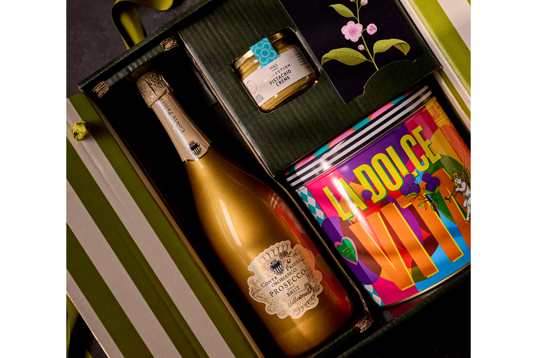 open image in gallery(M&S)Come Christmas, there's always one pesky person who's impossible to shop for. If you're stuck for gift ideas, look no further. Beautifully presented, this panettone and prosecco set even comes with a jar of pistachio cream, for a truly indulgent treat. With 20 per cent off the price, why not treat yourself, too?